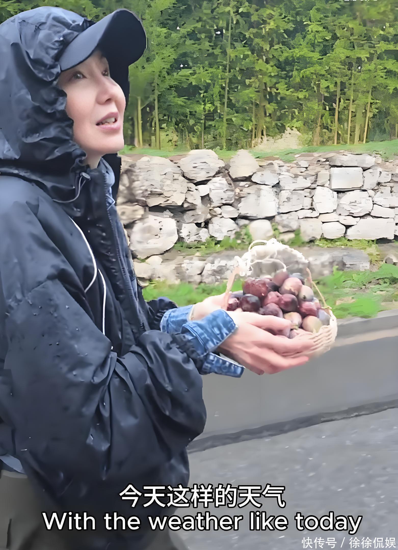 那眼神,没有丝毫的矫揉造作,没有名利的纷扰,只有对大自然馈赠的真诚感激和对生活点滴美好的珍视。这一刻,她不再是那个在银幕上光芒万丈的影后,只是一个单纯享受收获快乐的孩子。