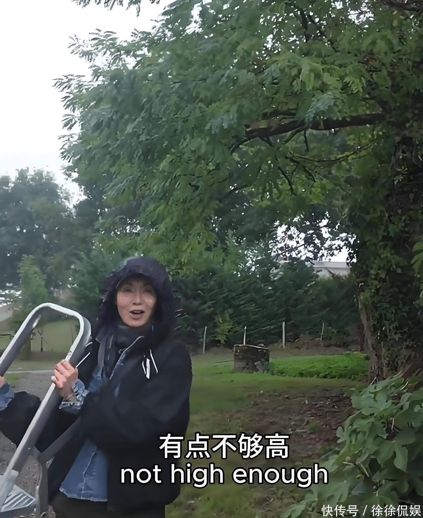 62岁张曼玉分享在果园淋着雨爬梯子摘无花果,网友: 依旧美貌在线